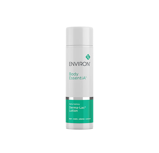 Environ Body EssentiA DermaLac Lotion contains a medium concentration of Alpha Hydroxy Acids (AHAs) for use on rough, sun-damaged, and congested skin. This hydrating lotion helps smooth and soften dry, rough skin on the elbows, feet, and knees as well as providing an overall soothing experience.