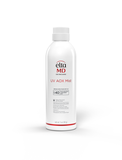 Enjoy a reimagined sunscreen spray experience with EltaMD UV AOX Mist Broad-Spectrum SPF 40 — a sheer-finish 100% mineral sunscreen spray that’s enriched with antioxidants to help prevent premature aging and rejuvenate skin. This lightweight and water-resistant formula is gentle enough to wear daily and leaves skin feeling hydrated and moisturized. With our white-to-clear technology, the only time you see the sunscreen is when you’re spraying it on (so you don’t miss a spot!). It conveniently absorbs into the skin within seconds and blends flawlessly into all skin types — no streaks, patches or white cast in sight. It’s air-powered technology removes the need for chemical propellants, and features 360-degree sprayability for easy application from any angle — even upside down for hard-to-reach places, like the nape of your neck or in between your shoulder blades.